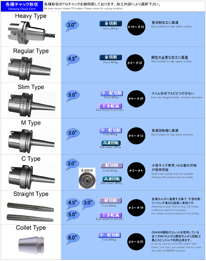 特殊耐熱鋼の採用と最適な熱処理で、業界最高水準の高耐熱性と繰り返し寿命を実現。 スリムなホルダ形状・強い把握力・高い芯振れ精度は、高能率加工に最適です。